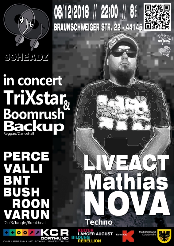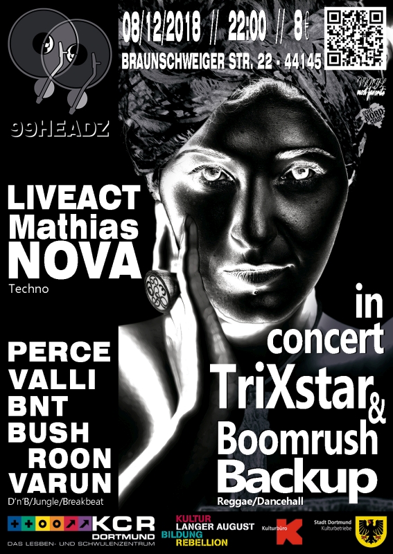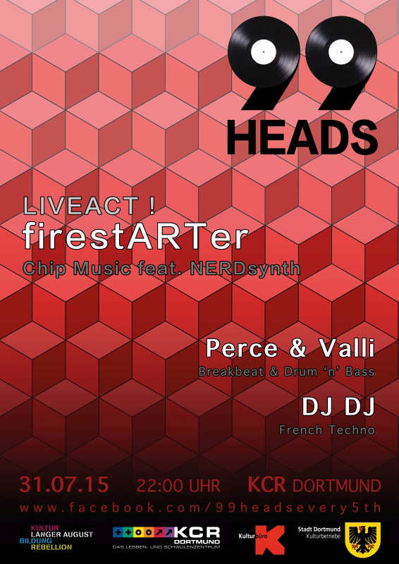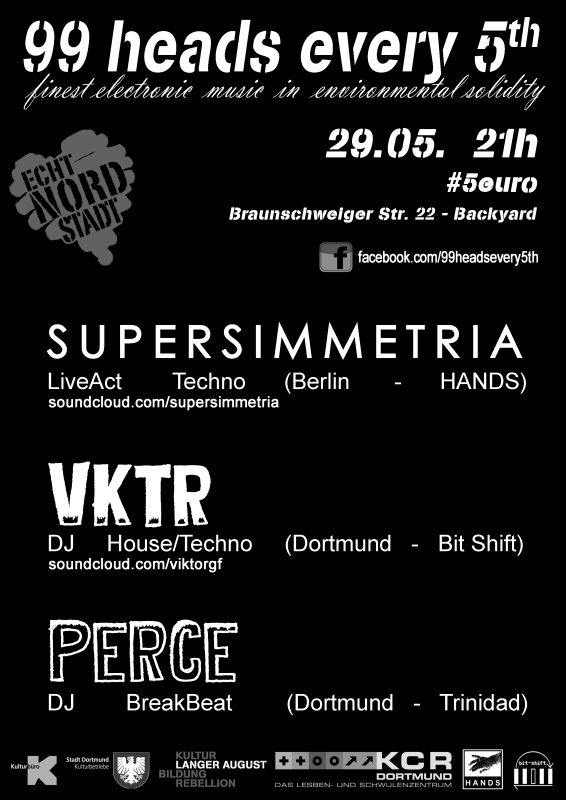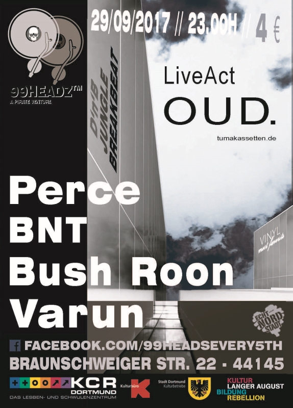 B: Ja, genau. Total günstig gelegen zwischen zwei Stadtbahnen und einer Busliene, in einer Seitenstraße vom Dortmunder Nordmarkt. Das Haus ist total schön. Das hat eine prämierte und denkmalgeschützte Fassade, echt jugendstil. Den Verein gibt schon 40 jahre lang und wir feiern da in den Räumen des am längsten bestehenden Schwul-/Lesbischen Vereins in Deutschland. Alles total entspannt, mit überdachten Raucherbereich und Bambusgarten. Die ganze Veranstaltung ist um einen LiveAct aufgebaut, wo wir uns jedes mal einen anderen Künstler dazu holen. Immer eine andere Stilrichtung aus dem Bereich 'elektronische Musik' und dazu Drum'n'Bass-Party mit unseren Residents Perce, VALLI, BNT, BushRoon und VARUN.