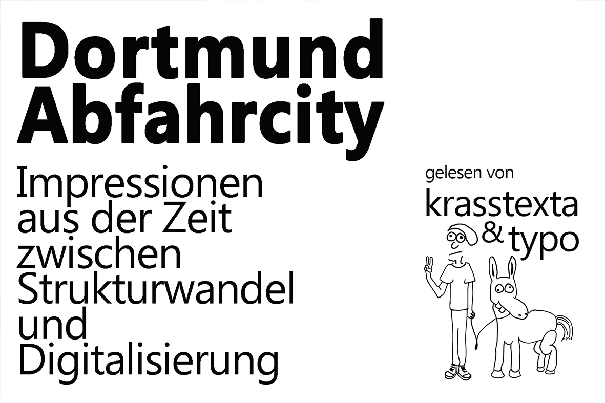 Krasstexta & Typo (a.k.a. Chirstian Aue) ist Dortmunder der Güteklasse II und liest aus seinem literarischen Frühwerk ausgesuchte Texte. Er beschreibt ein Dortmund am Ende des Endes der Montanindustrie und vor der Flutung des Phoenixsees. Die Texte erschienen zwischen 2000 und 2001 im "der kubus", der unabhängigen Studierendenzeitschrift der Universität Dortmund.