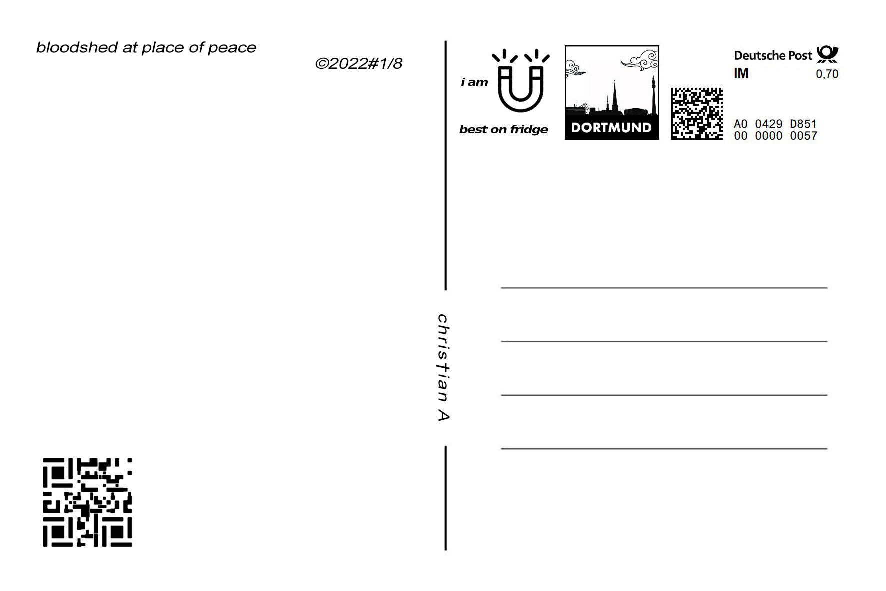 Postkarte "bloodshed at place of peace" - Rückseite
