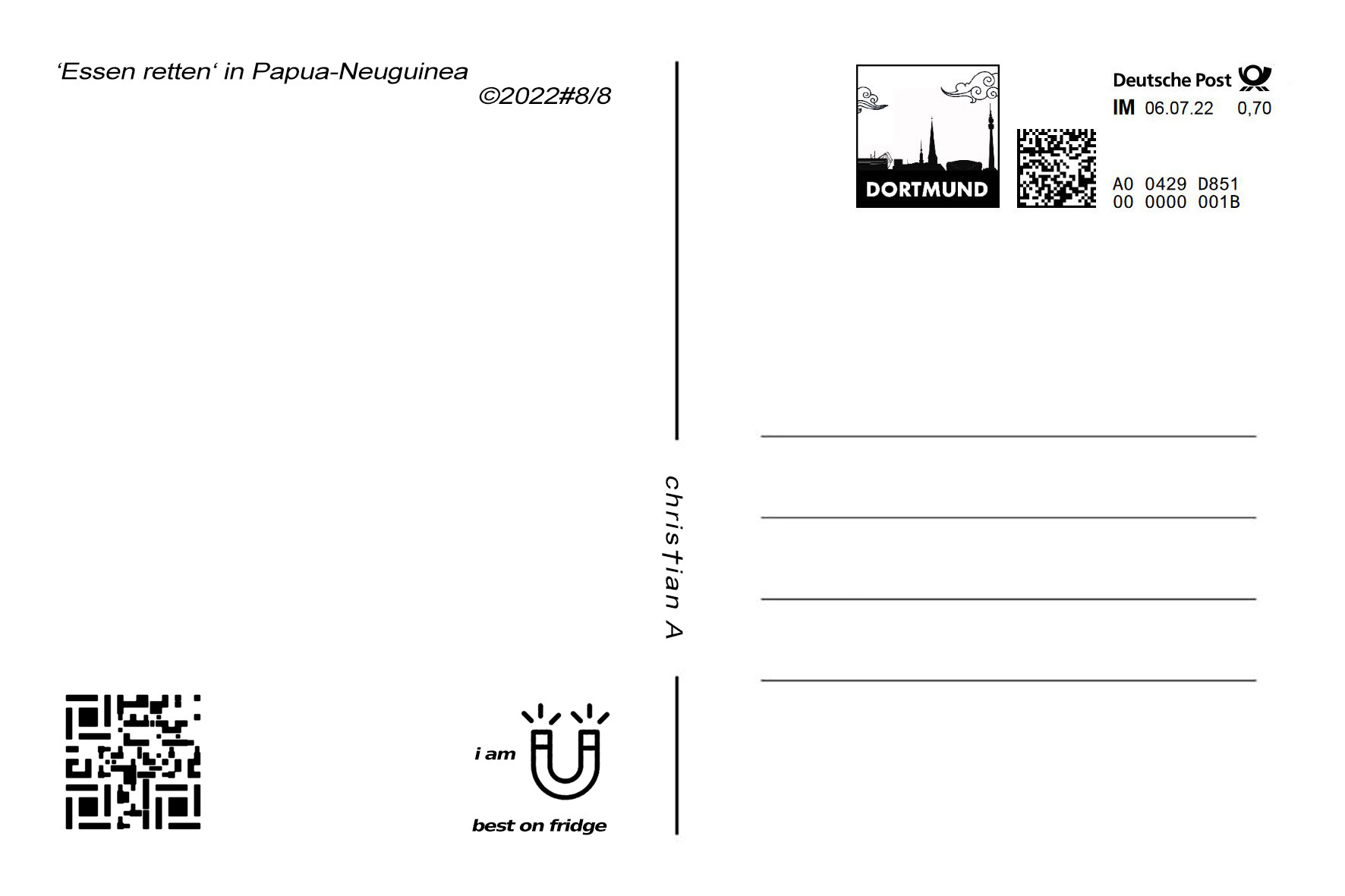 Postkarte "'Essen retten' in Papua-Neuguinea" - Rückseite